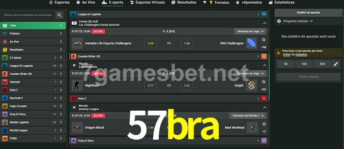 A aposta 57bra oferece aos jogadores a experiência mais conveniente de apostas em eSports!
